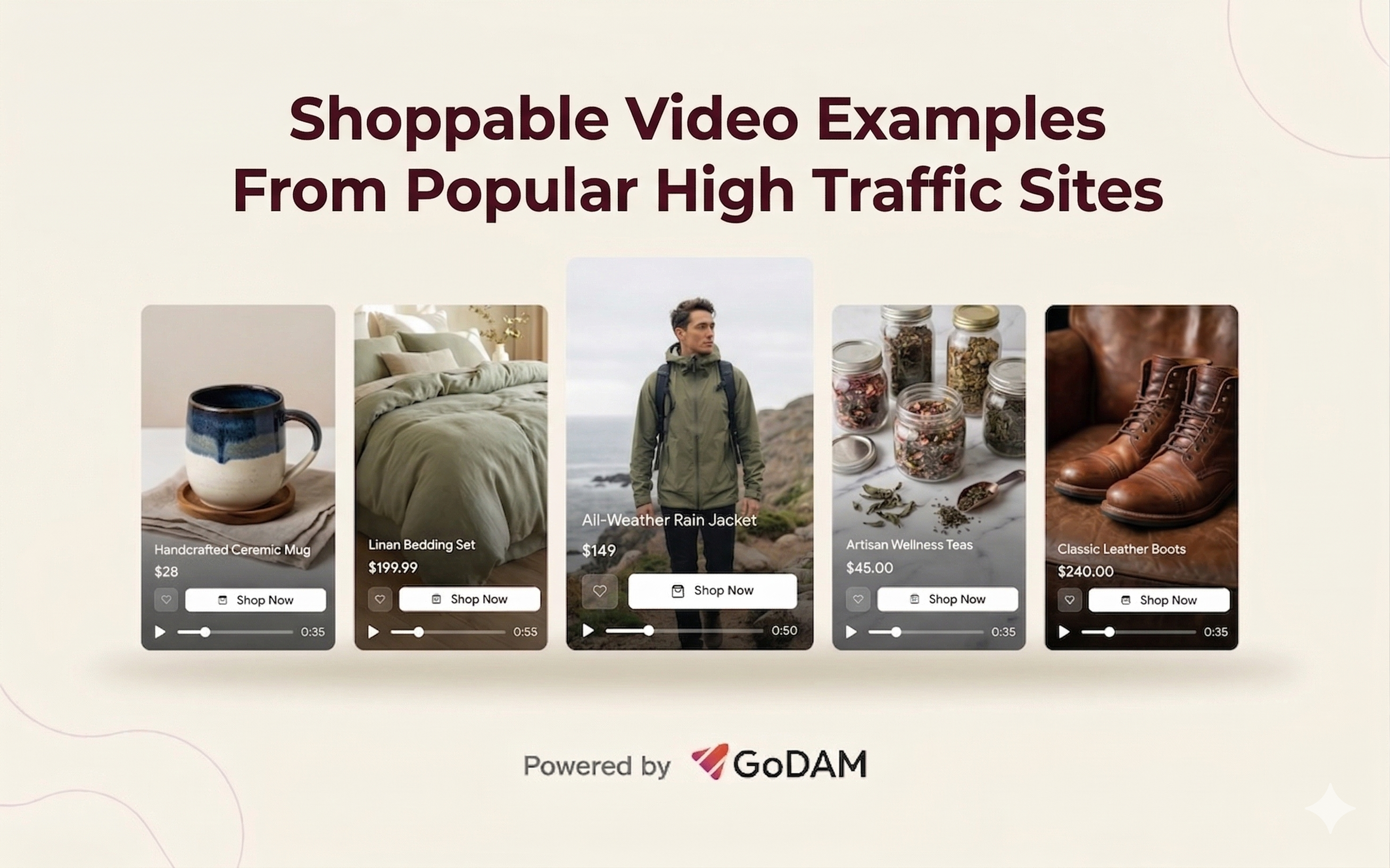 This is a blog banner image for Shoppable Video Examples From Popular High Traffic Sites
