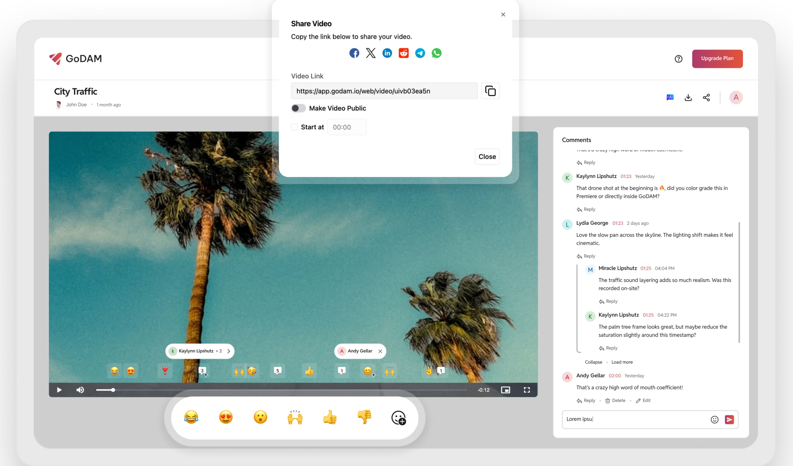 Encourage engagement with built-in emoji reactions and threaded, timestamped comments. Collaborate with team members or gather feedback from viewers in context.