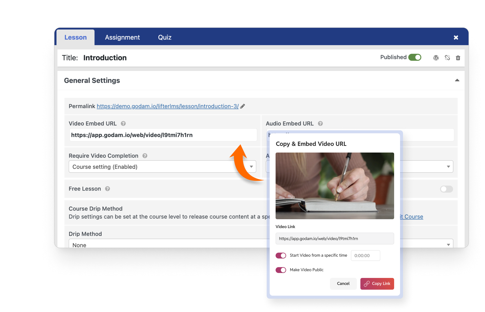 LifterLMS GoDAM Central video URL